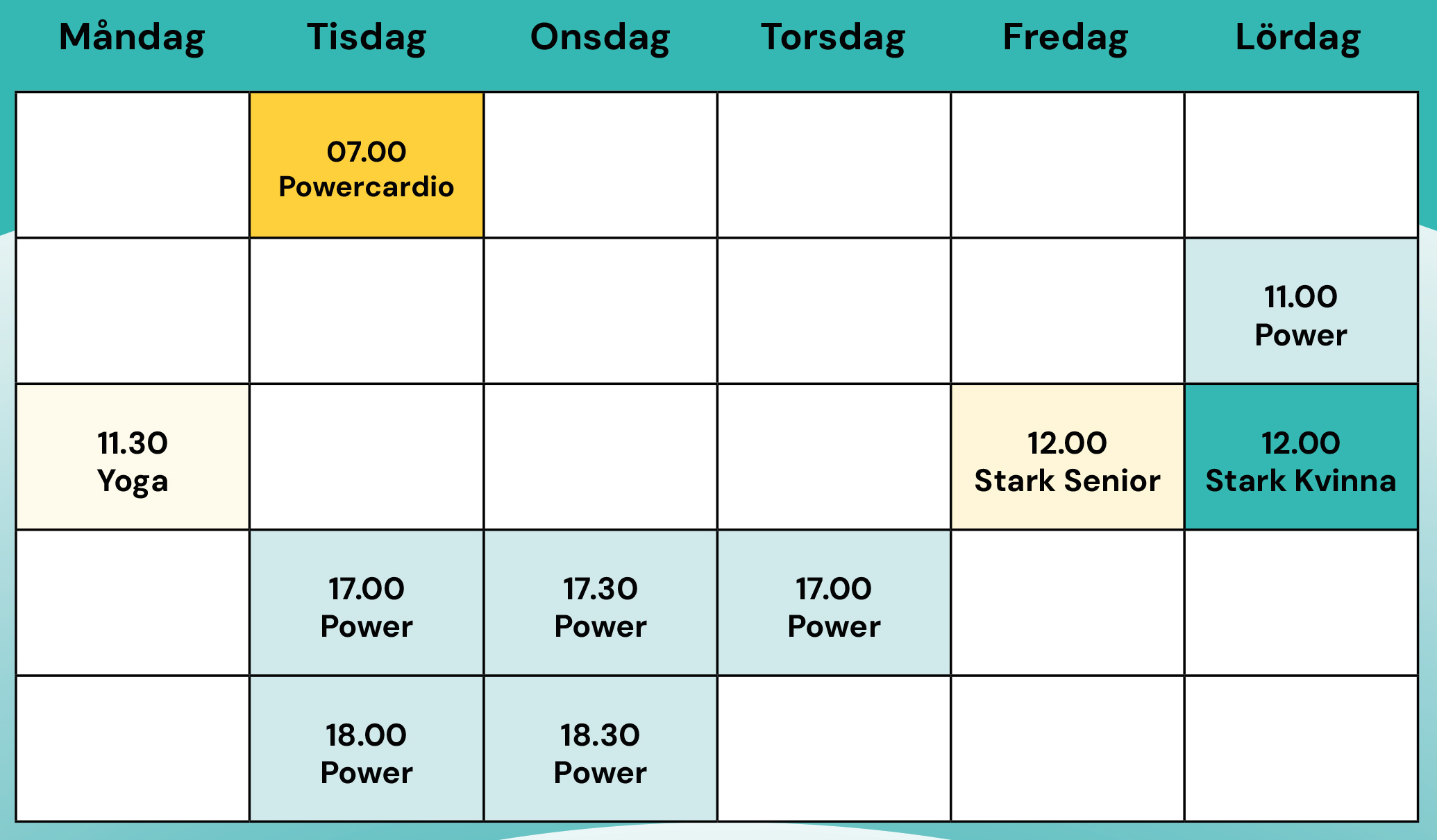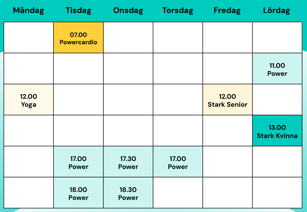 Aktuella pass samt dag och tid för träning i liten grupp om max 8 deltagare med en personlig tränare som ledare, hittar du lite längre ned.